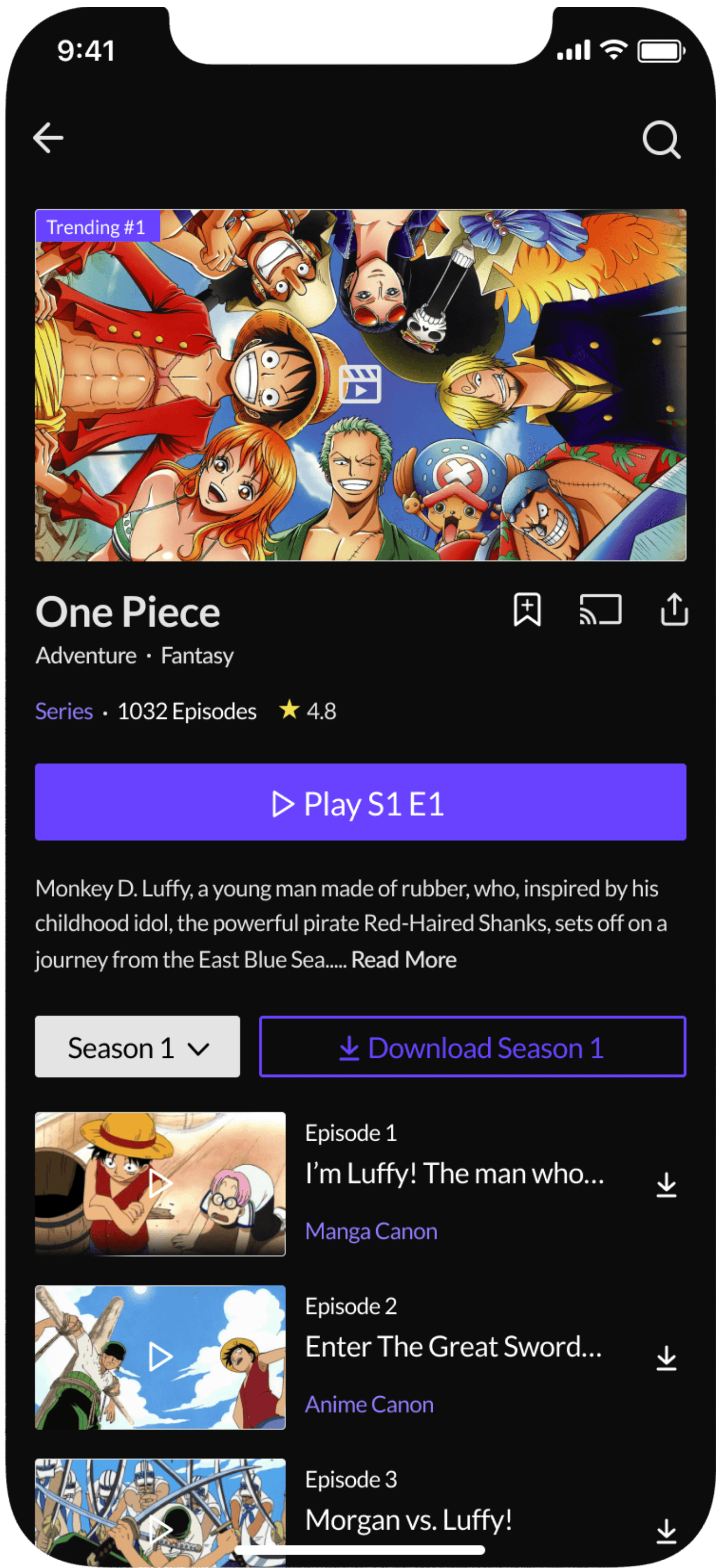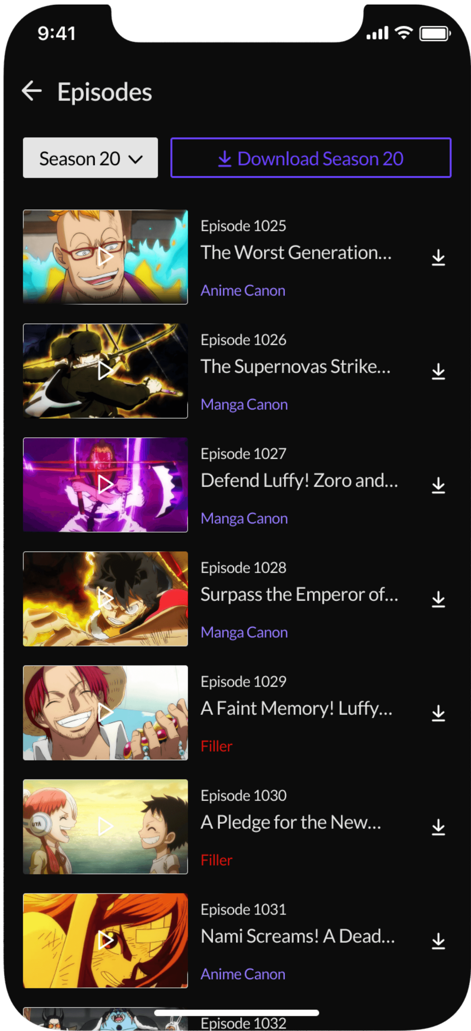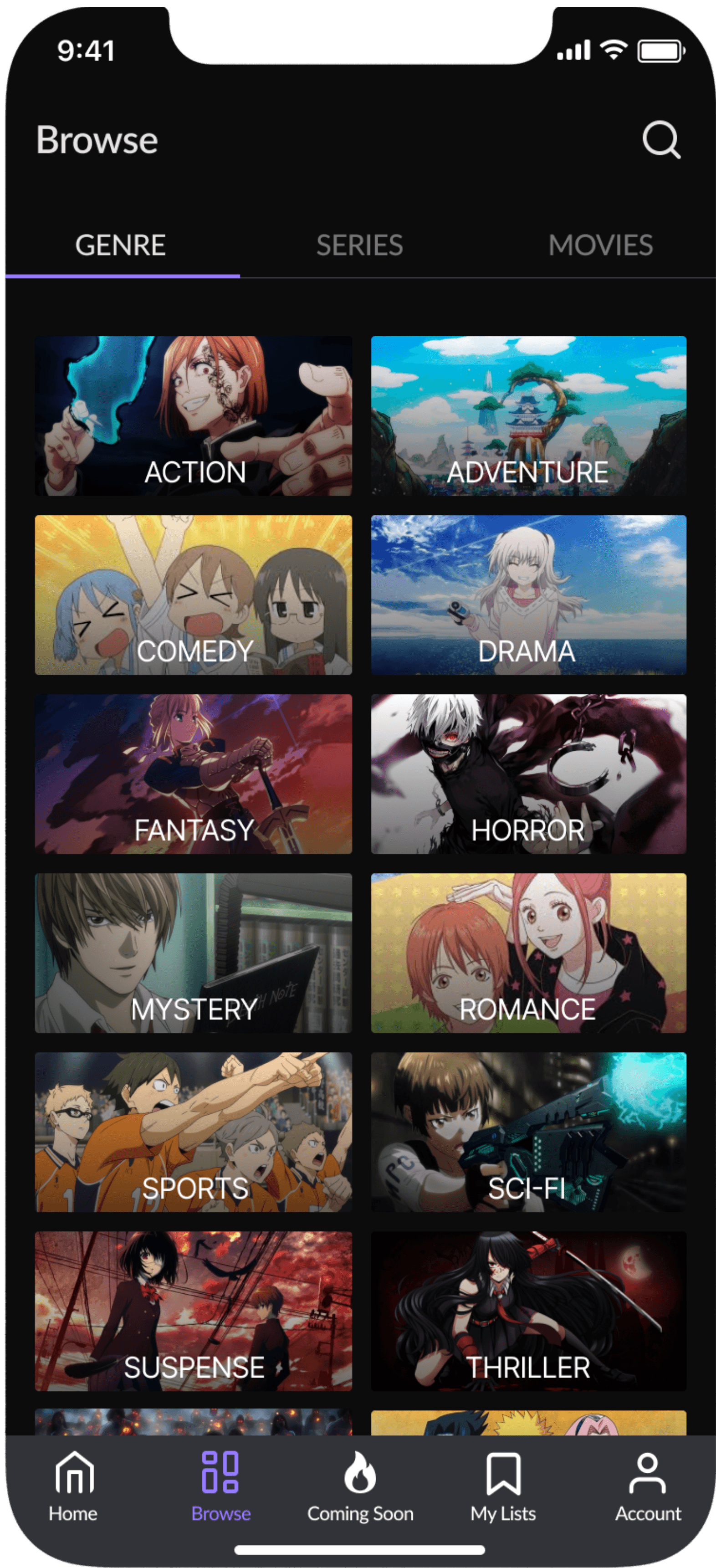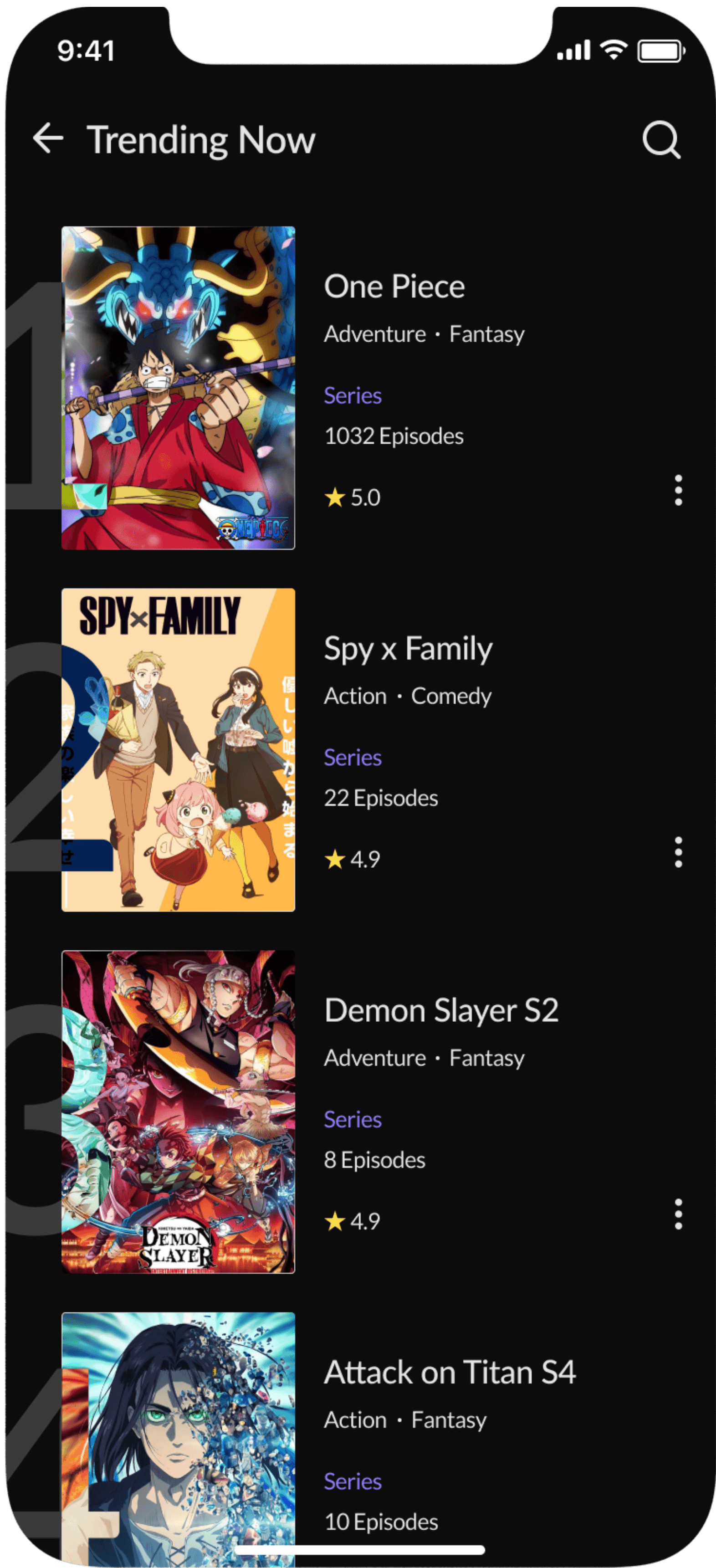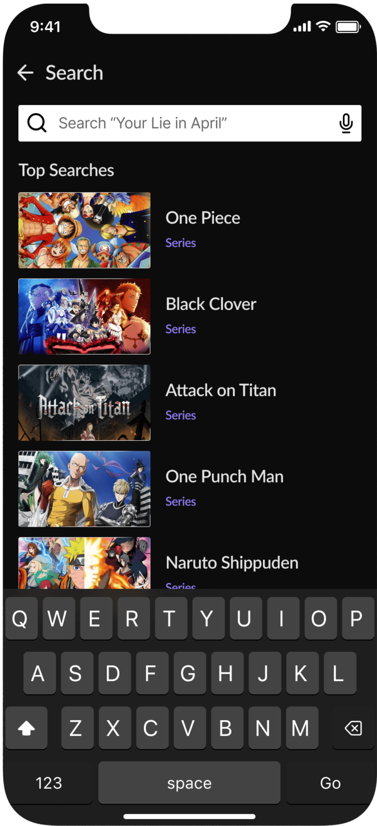 As Anime is fictional and full of thrill and adventure, Purple is the best suited color for anime theme as it indicates magic, mystery and fantasy. Regarding the typography, I chose ‘Lato’ as it is one of the best readable fonts and also the size hierarchy is according to IOS guidelines.