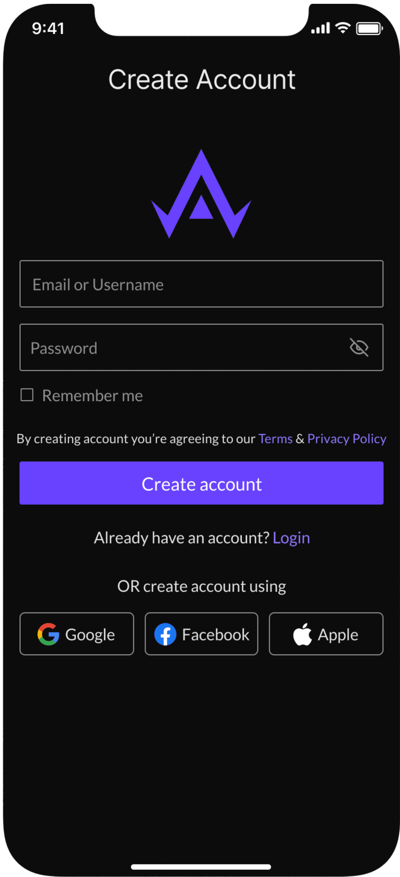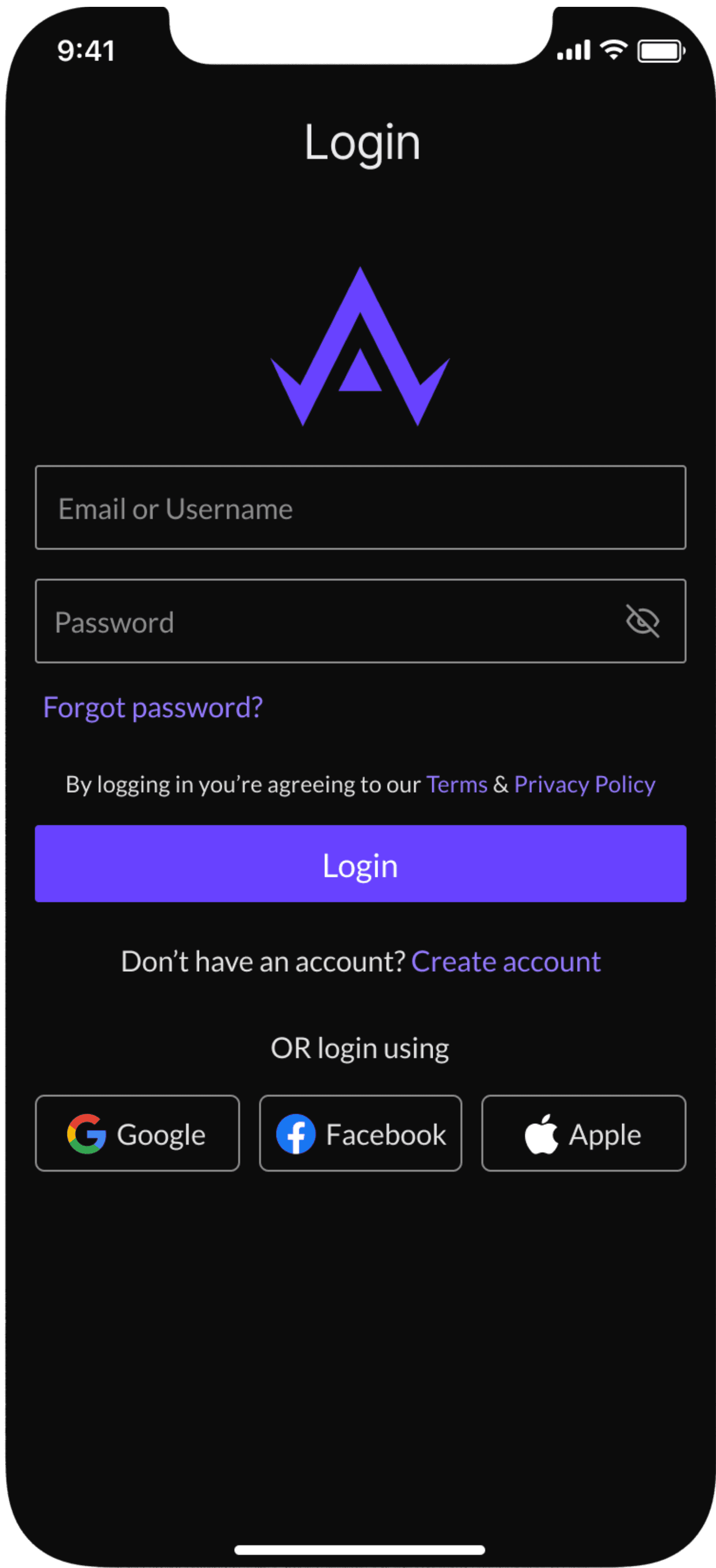 Onboarding screen to greet users to the application and provide a welcoming environment.
