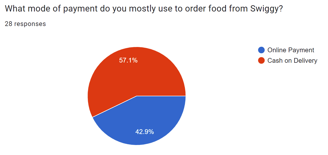 According to my research, in this era of e-commerce and digital world, cash on delivery (COD) is still dominant payment mode on Swiggy.