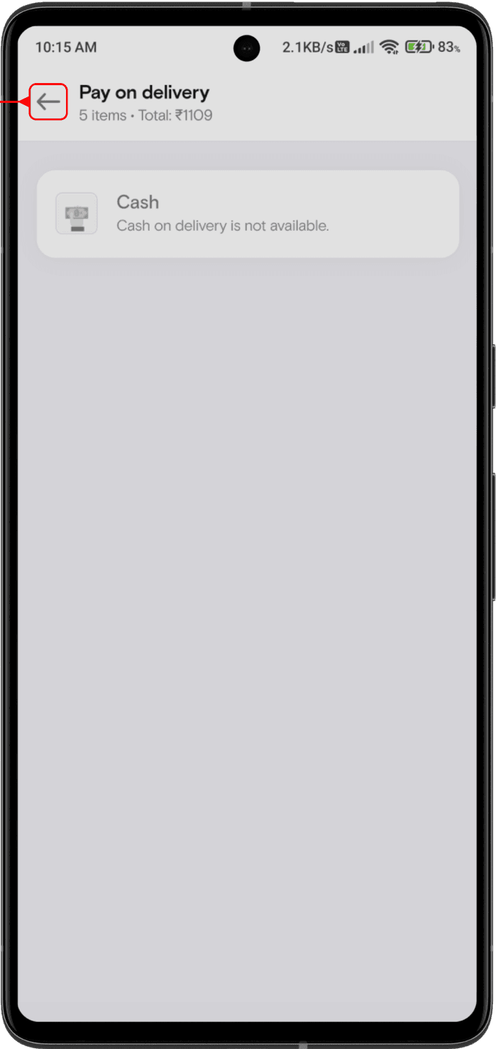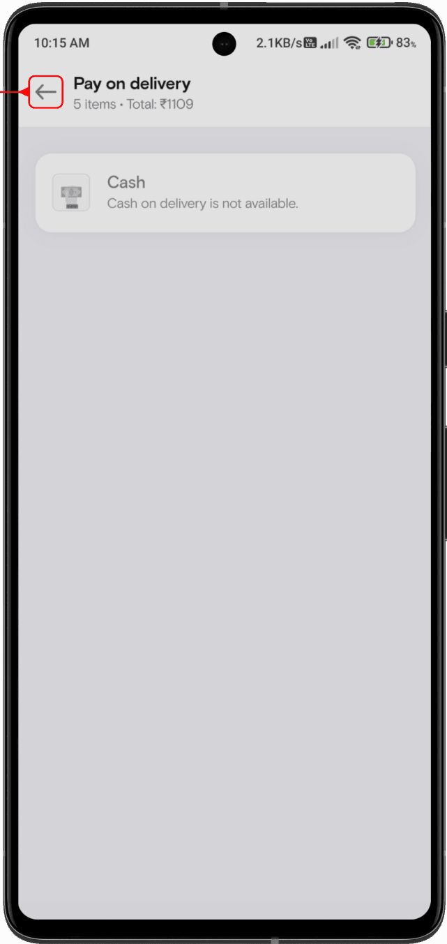 If COD was unavailable, then Jill should’ve been informed about it on the same screen rather than redirecting him to another screen and showing unavailability there.