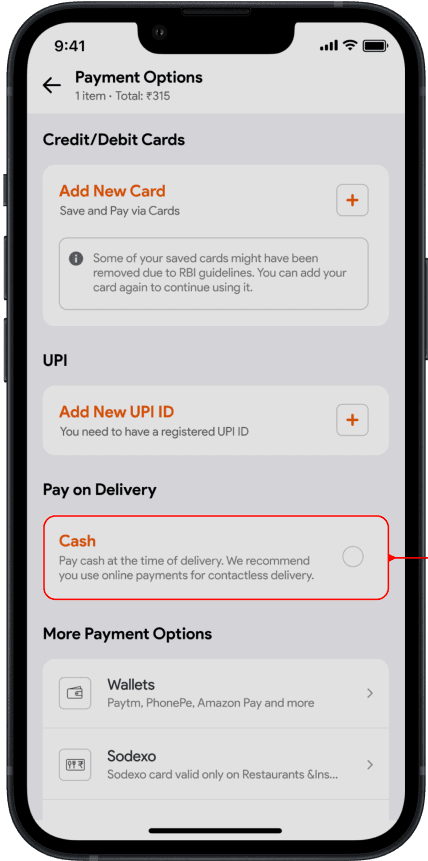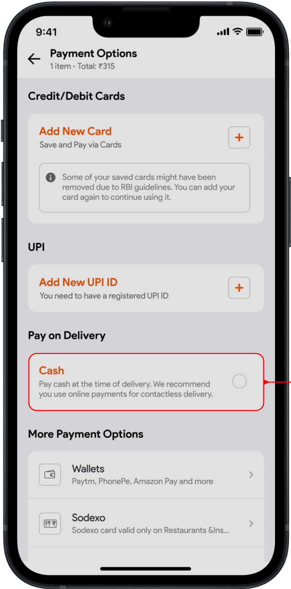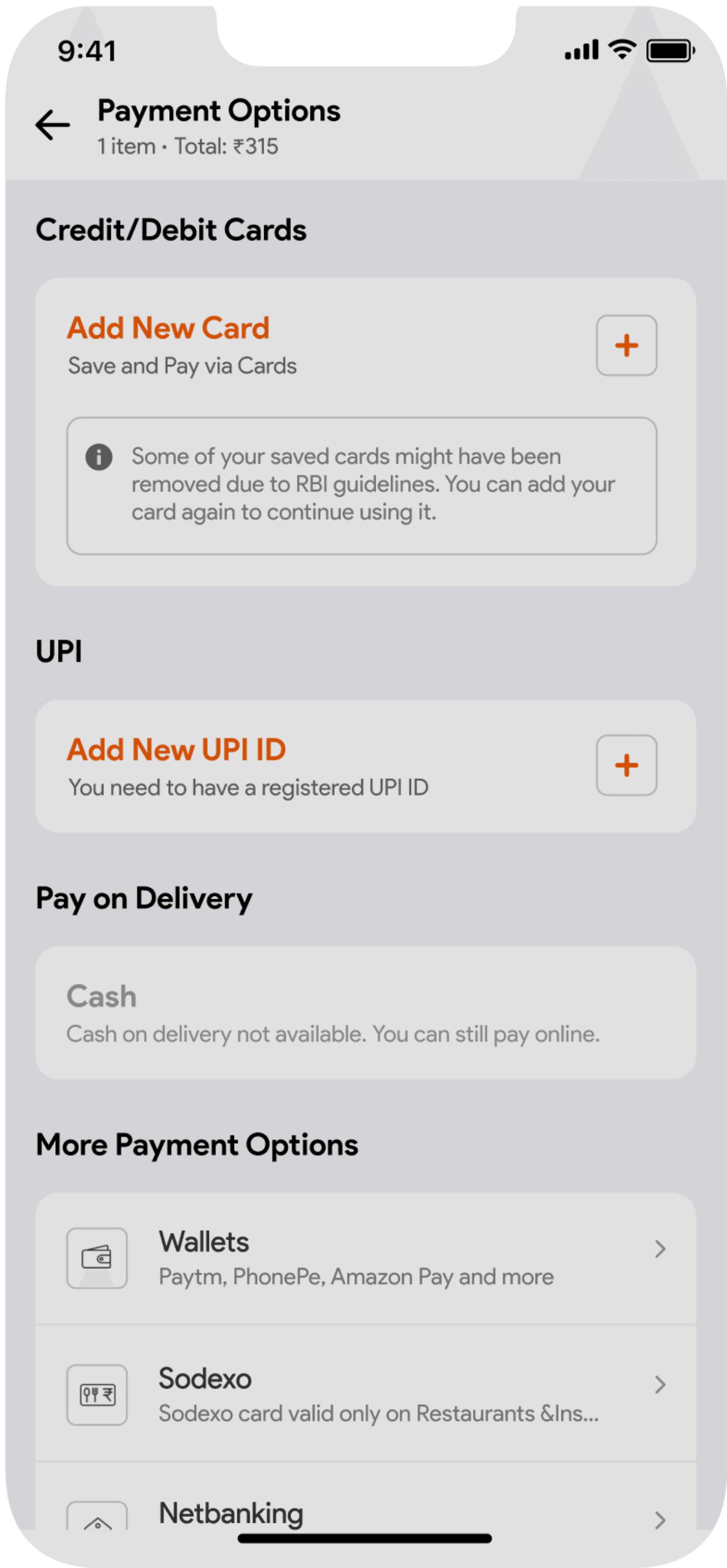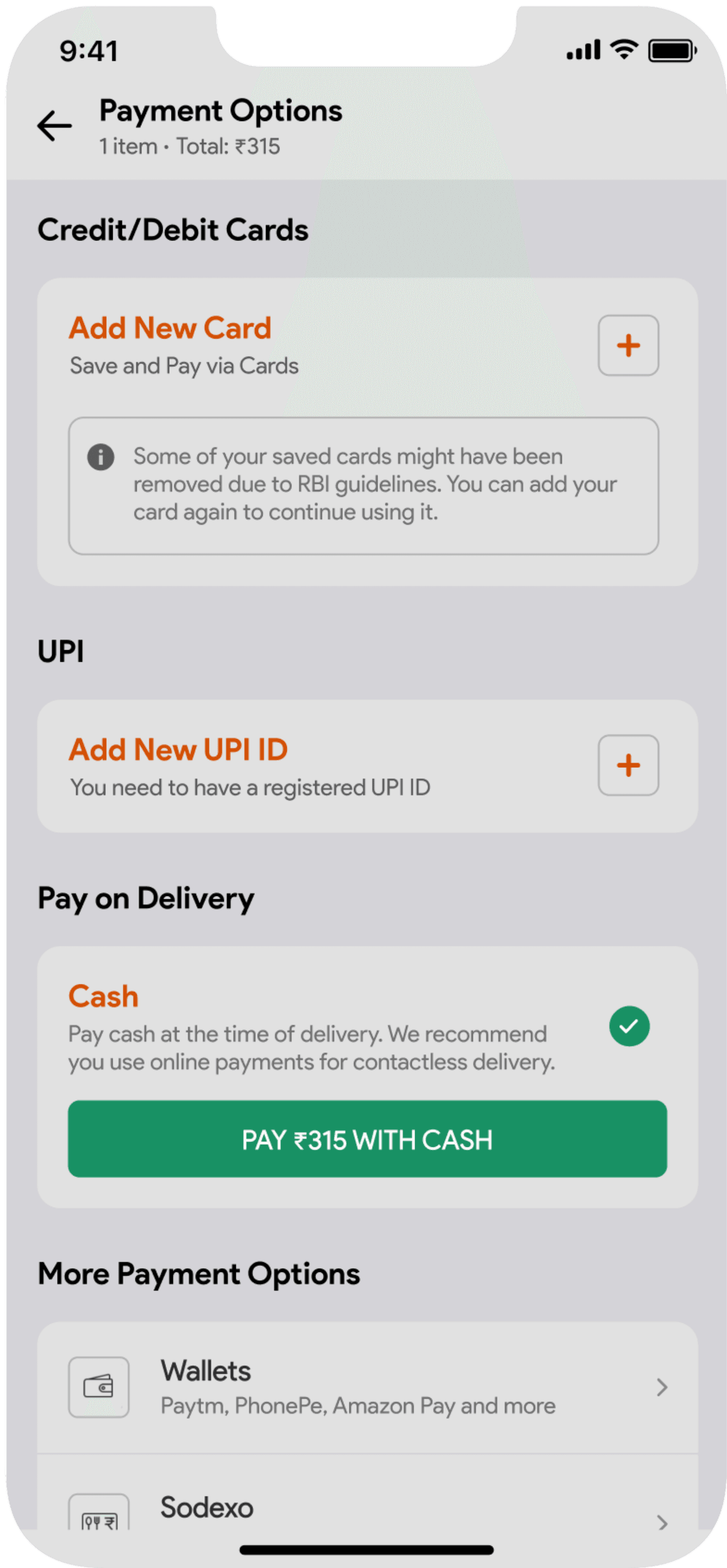 I designed this solution taking into consideration that COD is dominant payment mode on Swiggy.