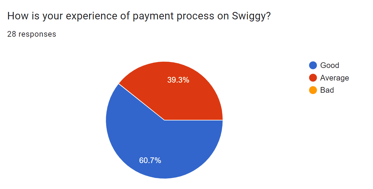 However, around 60% of users claim that payment flow of Swiggy is good and the rest of them believe it is average (approx. 40%)